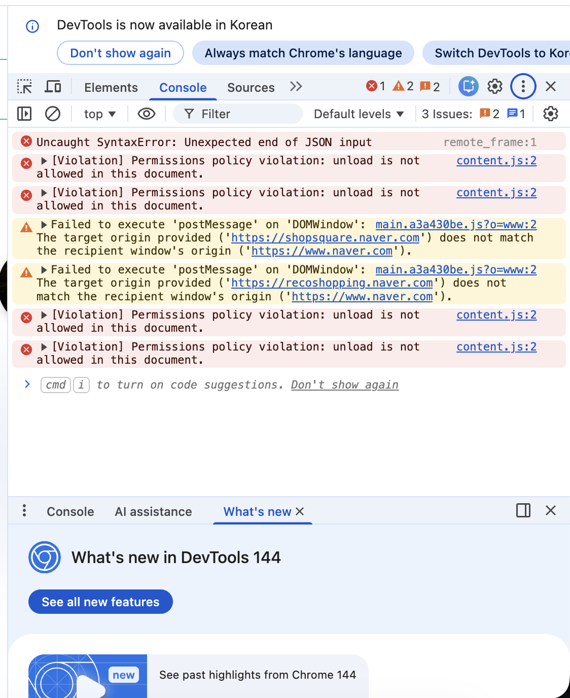 여느떄와 다름없이 개발자로써 변경된 구조가 궁금하여 개발자도구를 키는 순간, 페이지는 차단되었다.